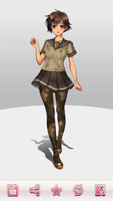 Pick out a tops, bottoms, socks, shoes, bags, accessories and background from wardrobe.