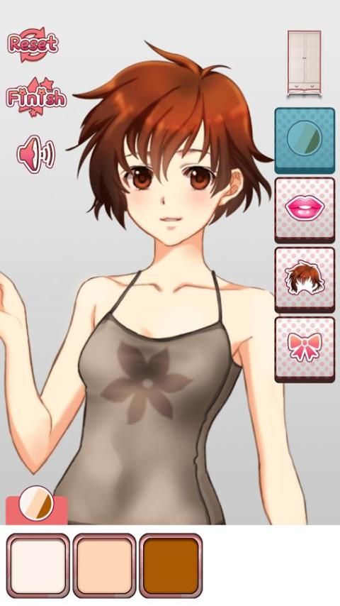 Pick out a body color, hair style, makeup and hair accessories from dressing table.