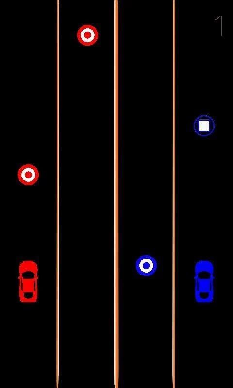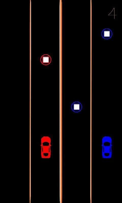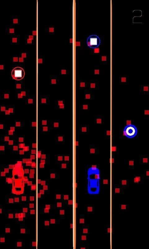 Driving 2 car is a very entertaining game where you drive a red and blue cars simultaneously with face difficulties in order to avoid these difficulties you focus well enough to avoid the red and blue boxes at once with the red and blue circles capture for refueling to continue the game.