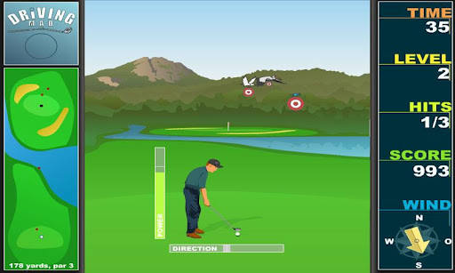 Driving Mad golf Want to be a master of golf? Driving Mad Golf is a professional golf game. Click on the screen to select your swing power and direction. You must land the required number of balls on the green within the time limit to get to the next level in Driving Mad Golf.Tips and TricksAdjust according to your last shot if your shot goes over the green, go shorter on the next swing, and vice versa.Watch the wind meter wind has some effect on how your shot travels.Shoot the bird targets hold your shot for a little bit if a bird target is available to hit so you get increased time bonus. Don39;t concentrate on the bird targets too much otherwise you might find yourself digging a hole for yourself.tags: sports Game, Free Game, Action Game, Casual Game, Free entertainment Golf, Mad, Driving