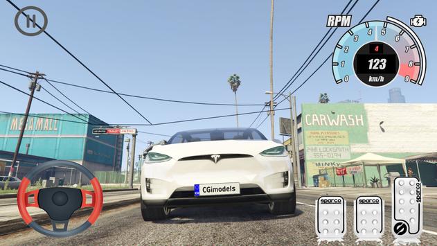 Driving school is a realistic driving stimulator Tesla Model X.