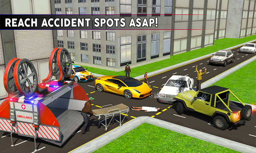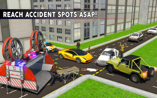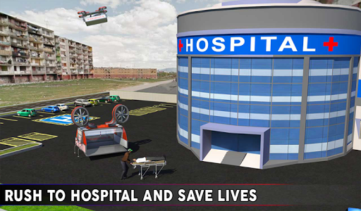 This futuristic ambulance drone concept is incredible in emergency situations like city traffic jam where ambulances cannot reach accident spot on time. 911 rescue department dispatches emergency calls to nearest city hospital rescuers to save citizens. Get behind the control stick of a rescue helicopter ambulance and fly above traffic rush to transport patients in city hospital. Turn on 911 rescue sirens and enjoy timeless ambulance helicopter missions in massive environment. Air ambulance rescue driver job is very critical and dangerous so be careful! Injured citizens need medical attention in abandoned town, take off in flying drone ambulance and transport patients to neighbor city hospitals. Stay alert & use reckless driving skills from ground to enjoy unique flying drone simulator game and reach accident site ASAP! Become best helicopter pilot to takeoff from hospital rooftop and fly above traffic rush through curvy city buildings. Flying in rescue helicopter drone has never been realistic as in this ambulance flight simulator.