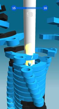 Hold onto the ball as long as possible to get fireball combo to blast through black platforms and reach the end of the stack to achieve victory!