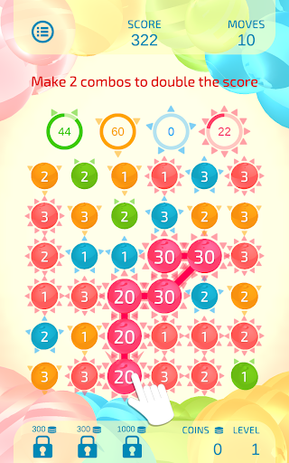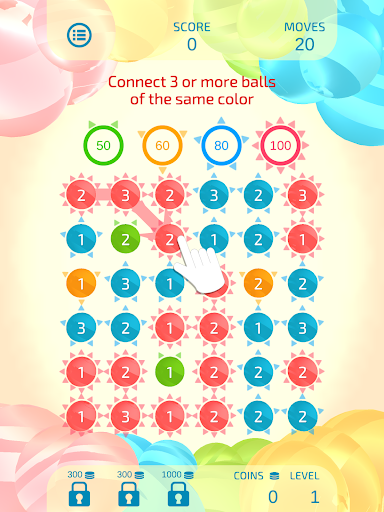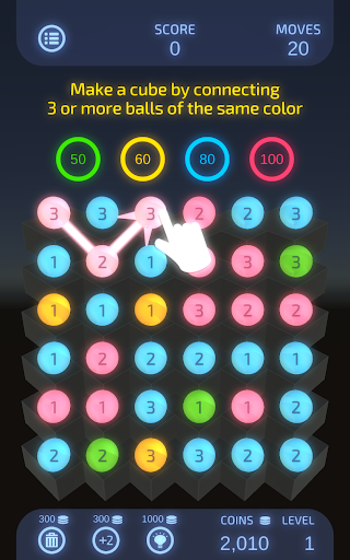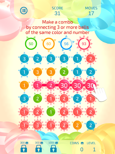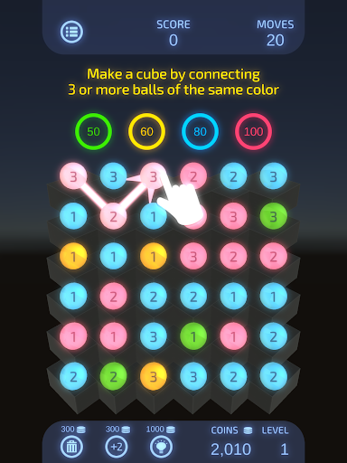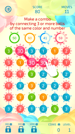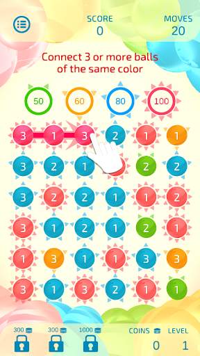 Although the rules are simple—just connect 3 or more balls of the same color and number—Dual Match 3 is unique in that scores vary greatly depending on the connection path.