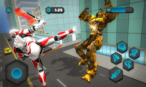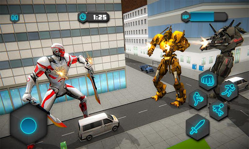 Welcome to begin robot warriors battlefield in this new futuristic robot fighting game. US army tiny tank are not strong to stand against evil robot fighter. Super robot destroying mini tank like toys only a super robot fighter can end this darkness with dual swords hero game. The US army build robot warrior suit for this day, use remote technology and step into shoes of super robot fighter. Use your ninja warrior skills and live up to your sensei promise. Forge powerful blade as sole ninja heroes in this futuristic robot fighting game. The darkness reborn in the form of war robots destroying tiny tank with sabers dual swords. Play the newest ninja robot car game as dual swords hero eliminate all war robots with dual swords. Enjoy this most awaiting super robot warriors battlefield game. Start your new journey with dual robot fighting game use your ninja warrior skills and ninja master skills like true swordsman.