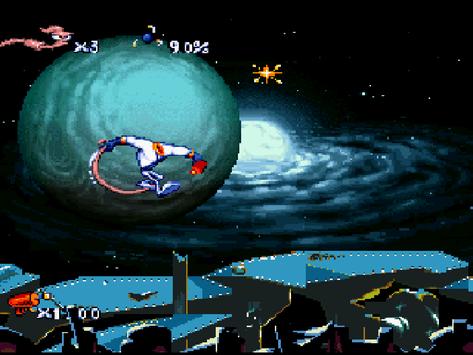 Jim wasn't always a studly super-worm. He was once just a spineless, dirt eater with no real mission in life... Then a cosmic twist of fate placed him in control of an ultra-high-tech-indestructible-super-space-cyber-suit. Now Jim must make it to Princess-What's-Her-Name by staying clear of Psy-row, the intergalactic bounty hunter, until the final battle with Queen Slug-for-a-Butt