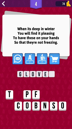 Put your mind to test! Beat the levels by guessing the words hidden behind the riddles.
