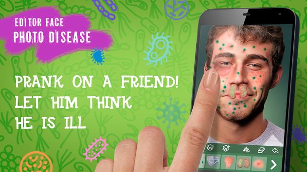 The Editor Of The Person. Photos Of The Disease. Effects, filters to process photos from camera. Take photos with your phone, turn on the editor of the Person. Photos of the Disease and collages and add cool layers of disease on a person's face! Do different types of infection to prank on friends! Take a photo of a friend on the phone camera without a flash, add effects of infection, filters, collages and layers of diseases and get a very funny picture! Use the application Editor Person. Photo Disease convenient editing and processing photos! Take advantage of all the opportunities the tools for creating fun photo collage! Send to a friend and tell him he's sick! The editor allows you to completely change the look and take a picture of a sick person! The Editor Of The Person. Photo Disease created for photo jokes, photo fun and entertainment!