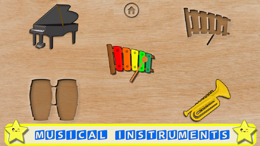 animals, numbers, geometric shapes, fruits, letters, musical instruments and means of transport (vehicle games)