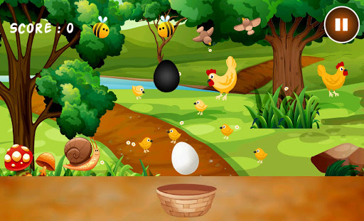 Catch white eggs and especially golden eggs give you more point void from black eggs. don't collect black eggs you will die if you will try to collect. If you catch black egg game will be over. This is simple and interesting egg catcher 2020 game with awesome graphics. Specially for children and family friendly game. Make highest score and challenge to your friends and family.