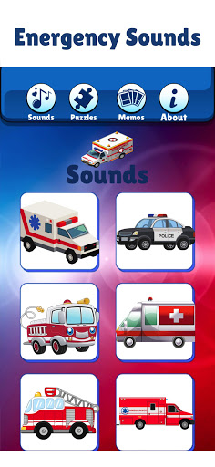 Designed for under 6-year-old kids. Gameplay is simple and fun but also educational, suited for younger children - touch the screen to play the sounds of police car, helicopter, ambulance, or firetruck then match it with the correct emergency vehicle.