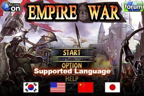 Empire War is a realtime strategy game performed by having a huge war between mankind and chaos other races such as devils or monsters as the background. The game can be played easily even by a player encountering the game for the first time and made to experience the enjoyment instantly through the control system optimized for mobile devices and simple screen configuration. The player is also able to spread colorful strategies through the growth system to reinforce the players own camp using various methods or the configuration of six hero characters representing two camps and 14 types of units having unique personality. Growth System: You can make all buildings or units appearing in the game grown using the Cubic gained while playing the game. The player gets to lead the game flow by the reinforcement of friendly force according to the players own unique strategy such as encouraging the friendly force by yelling out or poisoning the enemy. Hero Unit: The hero units may appear only 1 person at a time on one stage unlike the regular units appearing in groups while producing units are so powerful that it can confront the enemy troops singlehanded. The player is able to play the battle with a hero that the player has selected among a tough warrior striking sword, a magician with powerful magic or a paladin surrounding himself with holiness. Also, the war situation can be reversed at once at a critical situation if you acquire special skills by raising hero units.backup Attack Tower : The player is able to build a Tower backing up the friendly force with powerful attack by certain time intervals if necessary as well as the buildings for producing units. Various towers from the ones shooting arrows to the ones shooting cannons can be placed using Cubic the same way as units. You can form up the backup attack with your own unique method such as giving huge damage to a target point or making an extensive area surrounded by fire through the final enchantment. Defense Mode : You can experience more enjoyment through the additional configured in this game. The lt; Defense Mode gt; also has implemented both the road rule blocking the moving enemy along the preset road and the field rule in which the player arranges buildings directly and controls the moving path of the enemy that are most popular two types of rules with their proven amusement. Coping with Global Languages : Four languages of Korean, english japanese and chinese are supported so that the player using the corresponding language is able to become absorbed into the game even more.Contact Us bicore@bicore.co.kr donghoum@bicore.co.kr lhy7600@bicore.co.kr