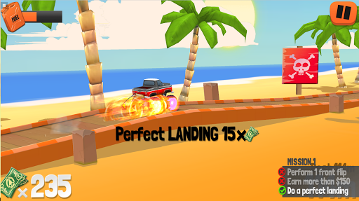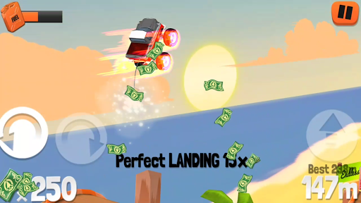 This is not a parking game! It’s a racing game! Fasten your seatbelt in this skill racer and race your Monster Truck as far as you can, collecting money, pulling off the biggest jumps, doing insane flips, avoiding gigantic bombs and make sure you don’t run out of fuel. If you do, you go back to the start and use the collected cash to upgrade your truck with new tyres, a bigger engine or a bigger tank and try again. You can improve your vehicle in five areas. The better your truck, the farther you will be able to go. And since this endless racer features an online leaderboard you will want to be on top of that, don’t you? Find out how good you are with the brand new free Endless Truck app.