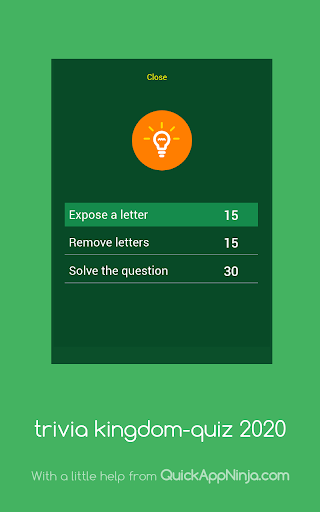 In trivia kingdom-quiz we offer several ways to help the player to get back on track such as show one correct letter remove an incorrect letter or reveal the answer altogether!