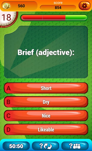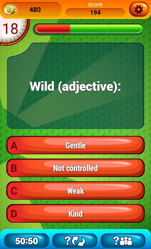 English Vocabulary Quiz Lvl 1 is a very good brain quiz and “trivia game” that will get your brain cells warmed up! Use your free time to improve your IQ and learn daily new vocabulary words!