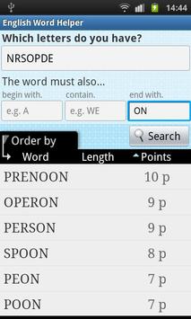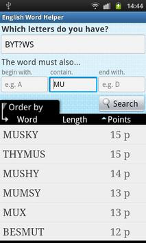 The result of a search is sorted according to the word score in games such as Word Feud and Scrabble so you can easily choose the best word. You can also sort the results alphabetically or according to word length.