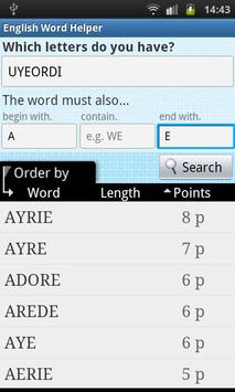 This app helps you play better at games such as Word Feud or Scrabble. Use English Word Finder to search for new words when you have difficult letter combinations.