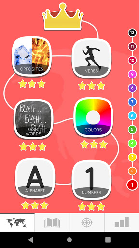 Basic: Alphabet letters , Numbers , Colors , Verbs , Food …