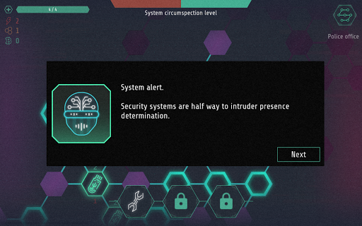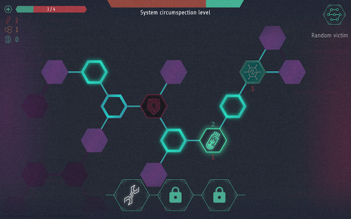 This is a hex-based minesweeper puzzle in a cyber setting, based on a story about a talented hacker. We try to make this puzzle a bit of a rogue-lite with hardcore elements.