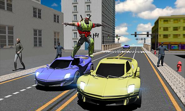 warrior. Become a Flying hardcore ninja champ to finish the crime and gangster criminals from your home town. With the Epic fighting of both flying ninja hero and real robot hero Experience, remove the dark forces like Duplicate Police Officers ,City Gangsters that are drifting in the city as a city turtle assassin frontier war hero. Captain Robo Ninja Superhero Warrior is special design for robot game fan who love robot transformation and robot fighting. Now we transform the human into the warrior ninja shadow with one side robotic look.