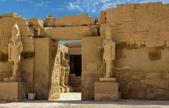 In this escape game, assume that you are a tourist visiting the ancient Egypt temple Karnak. You have been visiting and wondering at the beauty of the temple. Finally, you find that you have been trapped inside as the main gate has been locked. Find a way to open the gate and escape from the temple by finding objects and solving puzzles.