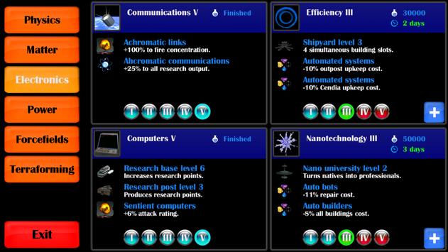 -Research technologies that help you fight your enemies by unlocking new ships, weapons, and bonuses.