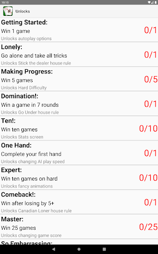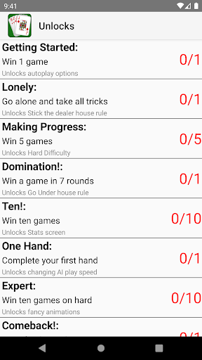 Play Euchre with challenging AI players, numerous settings, unlockables, and statistics! This app includes: