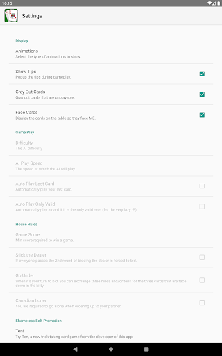 - Unique "House Rules" options: Game Score, Stick the Dealer, Go Under, Canadian Loner