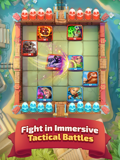 Compete with other mobile legends to become the ultimate strategy king in a royal pvp battle that mixes chess, card tiles and enemy warlords.