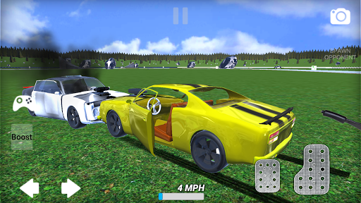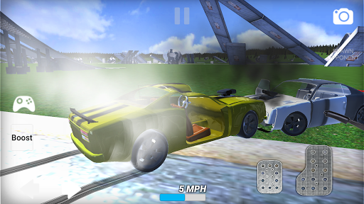 Use one of the cars to drive and simulate real impacts by jumping on ramps and crash at high speed while making big stunts.