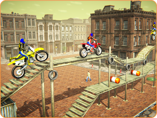 Fantastic & extremely adventurous two-wheel simulator Presents you insanely tricky and adventures stunt action. This is a crazy experience waiting for you to enjoy it. This extremely tricky motor bike stunt master welcomes you in most realistic 3d environment where you will have to perform multiple stunts while experiencing authentic physics. The User Interface features multiple controls including Acceleration, breaks, & forward and backward weight shifts to do cool stunts like rolling over and balancing your bike on difficult stunts.