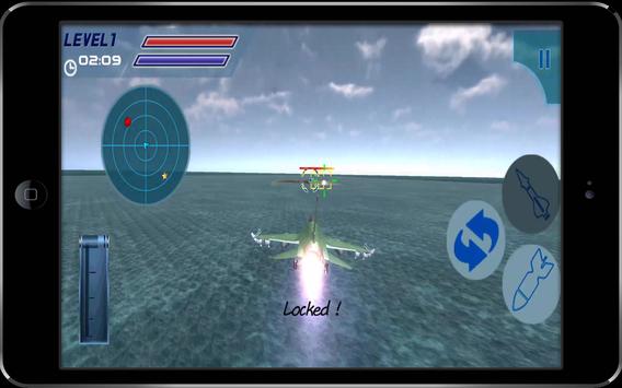 This 3D fighter jet simulator is a modern aircraft combat plane simulator in which you as a fighter pilot can fly around in a F16 jet plane. With F16 air strike fighter game spot the missile launcher guns and destroy them before they hit other missile. Stick to the rule of locate and shoot in the air for your ultimate survival. Relay on your guts to trace out an anti-aircraft ship carrier. Sink down Larger ship carrier holding heavy weapons and assault gunner machines. F16 air fighter game destruction with F16 air strikes and F16 air missile is your ultimate goal. Do dogfight if you want to test your jet fight survival skills? Fly high in the skies like a pro air force fighter jet flight simulator.