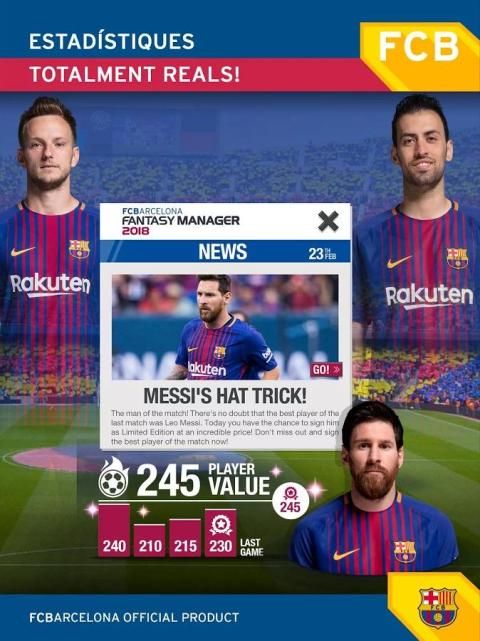 - PLAYERS’ VALUE: The core of the official FC BARCELONA Fantasy Manager 2017 is the player´s value which differs from other free football games. The higher the value of your top 11, more chances you have to beat your opponents. Be a talented club manager! Hurl down your opponents by being the best club manager with the most valuable players – your top 11. These scores vary regarding their actual performance and the competition in which your top 11 perform.