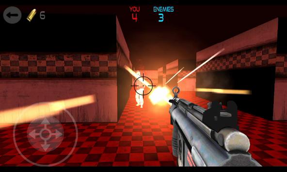 You've machine gun which fires automatically when enemies are in range. Move around cautiously to locate any Shooter AI and kill them first before they hunt you down.