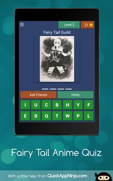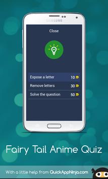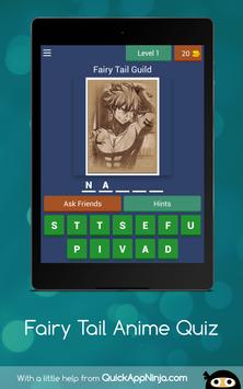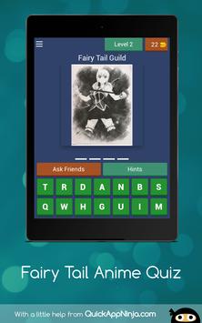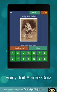 Fairy Tail Anime Quiz contains interesting pictures of fairy tail's characters. Discover curious facts and impressive pieces of knowledge that were used to create one of the best quiz games. Install Fairy Tail Anime Quiz , a challenge to your general fairy tail knowledge, and demonstrate everything you know about the fairy tail universe!