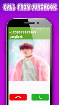 Features False BTS Call From Jungkook: - simulate fake incoming calls from cats. - cat sounds. - Phone ring. - timeout in seconds. - Options to reject or accept the call of the killer clown. - great as a game. - free full use. - easy to use. - You can add a Jungkook recorded sound Download False BTS call from Jungkook for free right now