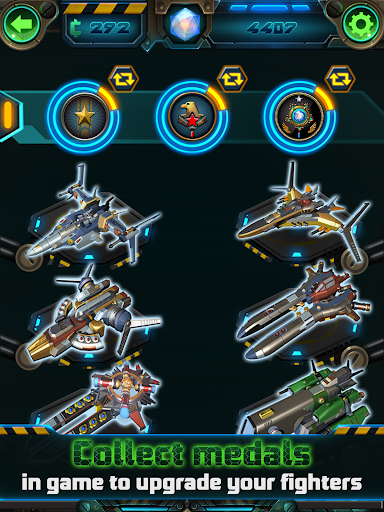There are 6 spaceships to select, then upgrade it to boost your fire-power to attack enemy aeroplanes.