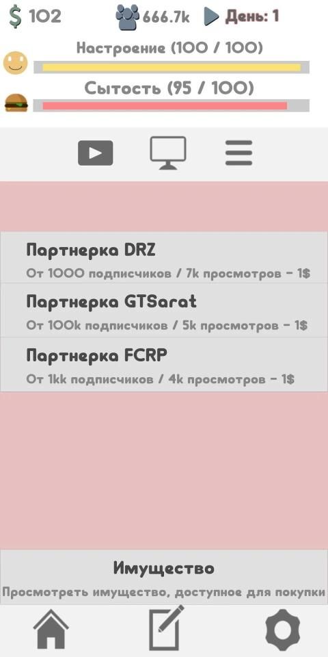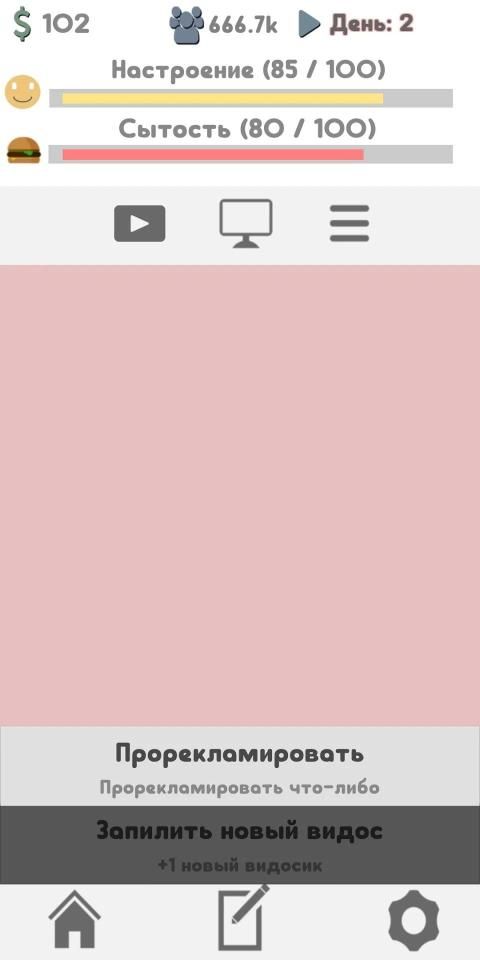 You will start without subscribers, without advertising. You will have to achieve everything yourself in this simulator, it imitates how YouTube lives. Create your channel, write videos, recruit subscribers, buy property. Start playing youtuber simulator now. The success of the video depends on various factors, as well as random events diversify your game.