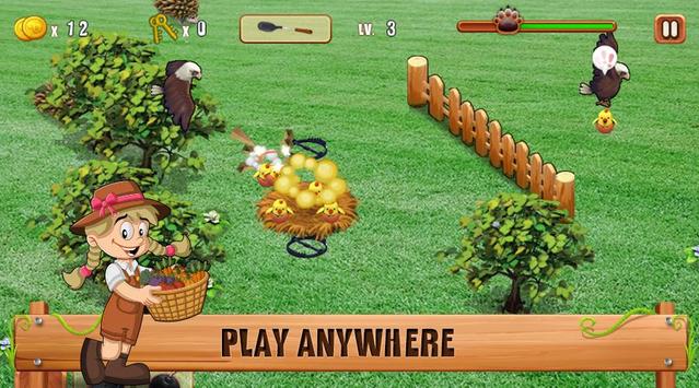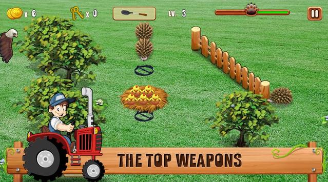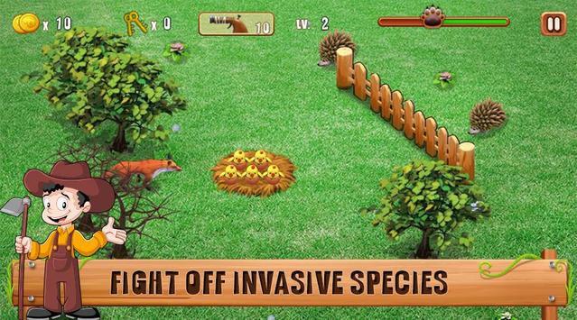 This game is a family farm game but not like any other games. You will not cultivation and breeding anything. In this game, you are peasant soldiers, who protect your chick from the invasive species.
