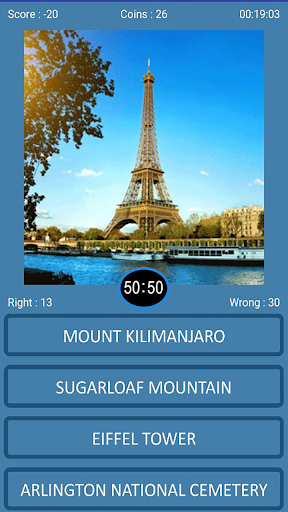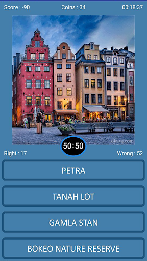 This free trivia game is easy way to learn about the world famous places in fast and quick way. Learn new places, cities & countries and plan your next trip or holidays to that destination that you have never heard or known before. A great way to increase your world travel knowledge with your family and friends by sharing your top scores.