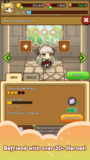 * Summon and strengthen your heroes to unlocked variety skills