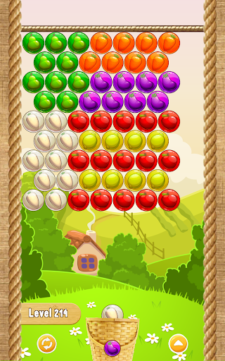 Shoot so that fruits and vegetables fall into clusters of 3 or more fruits or vegetables. For example, strawberries for strawberries, blueberries for blueberries, apples for apples and so on. The resulting groups of identical elements will burst and disappear. Try to burst all the fruits with vegetables to go to the next level.