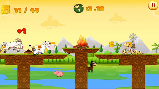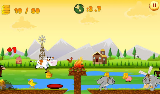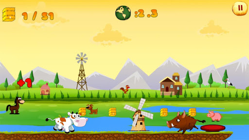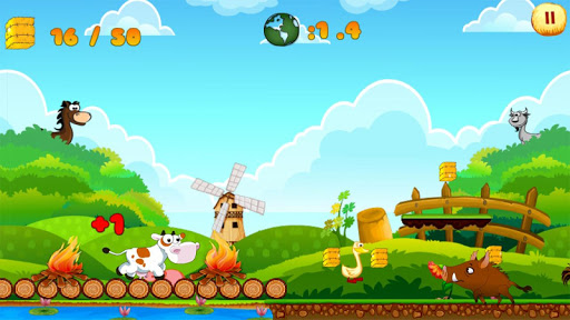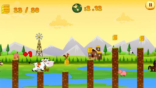 Our cow has to face a lot of enemies in the farm like snakes, boars, dogs etc to reach the goat to rescue its baby cow before it gets too late. JUMP the obstacles in the farm and eat the haystacks in the farm to get enough energy for the cow.