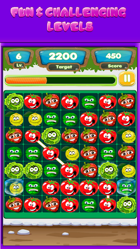 🍆 Connect 3 or more fruits and veggies by putting them on the same line and crushing cute veggies by making long chain! Earn points by joining vegetable and fruits. You can make longer chain of vegetables and fruits to get more points! Fruit & Veggies : Link Line Match 3 Puzzle Game is advance match 3 game it is a very addictive juicy casual game! 🍆