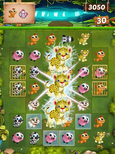 ✔ Crush 5 animal frenzy in a line to create color blossom