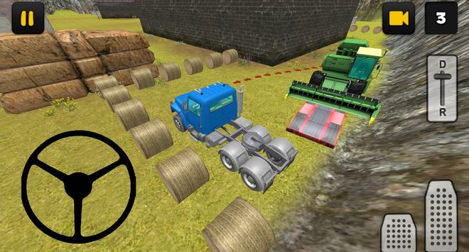 In this Harvester Transport edition of Farm Truck 3D you’ll learn how to drive with a truck and trailer with a loaded harvester. Driving with a oversized load is not easy, you need to look out for obstacles, otherwise you’ll hit those objects. In 18 levels you’ll face realistic situations where you have to park your truck and trailer with an oversized load. To finish a level you first have to attach the trailer, to do that follow the red arrows. After you’ve attached the trailer, you have to park your truck and trailer, to do that follow the yellow arrows.