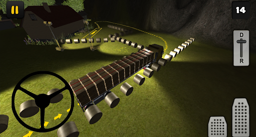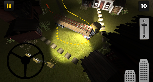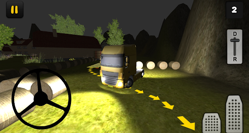 You need to deliver hay bales to the farmers. Your day starts very early so it is still dark. In this Hay Transport at Night edition of Farm Truck 3D you'll learn how to transport hay bales at night. Driving at night is very different from driving in the daylight, you need to be careful because your vision is limited. In 15 levels you'll face realistic situations where you have to maneuver your truck and trailer loaded with hay bales. To finish a level you first have to attach the trailer, to do that follow the red arrows. After you've attached the trailer, you have to park your truck and trailer, to do that follow the yellow arrows.