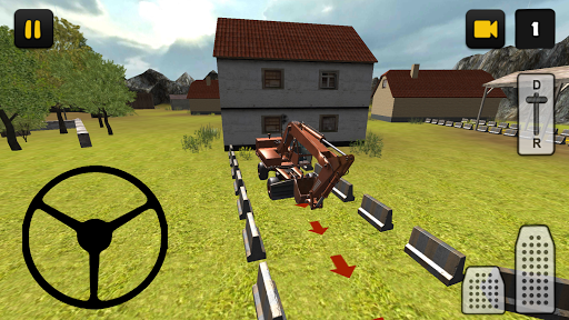 The excavator is a important vehicle on the farm, you need it for a lot of jobs. In this Excavator Driving edition of Farming 3D you'll learn how to drive with a excavator and trailer. It's not always easy to drive with a excavator and trailer, you need to take care of the boom from the excavator for example. In 15 levels you'll learn how to drive the excavator properly, you'll have to reverse into small spots for example. To finish a level you first have to attach the trailer, to do that follow the red arrows. After you've attached the trailer, you have to park your excavator and trailer, to do that follow the yellow arrows.