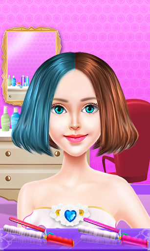 Don’t want to curl all of the hair? That’s okay, with Fashion Hair Salon you can pick and choose which hair to curl and which to leave straight. Cut the front short into bangs and leave the back long as you like!