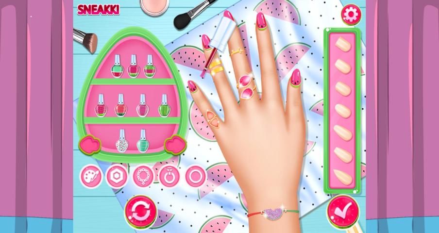 Each one of these stylish princesses loves watermelons. They also really like outfits and even nail designs that feature their favorite type of fruit. Can you help them with a quick manicure that includes plenty of wonderful watermelon colors in this online makeover game?